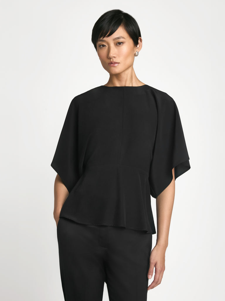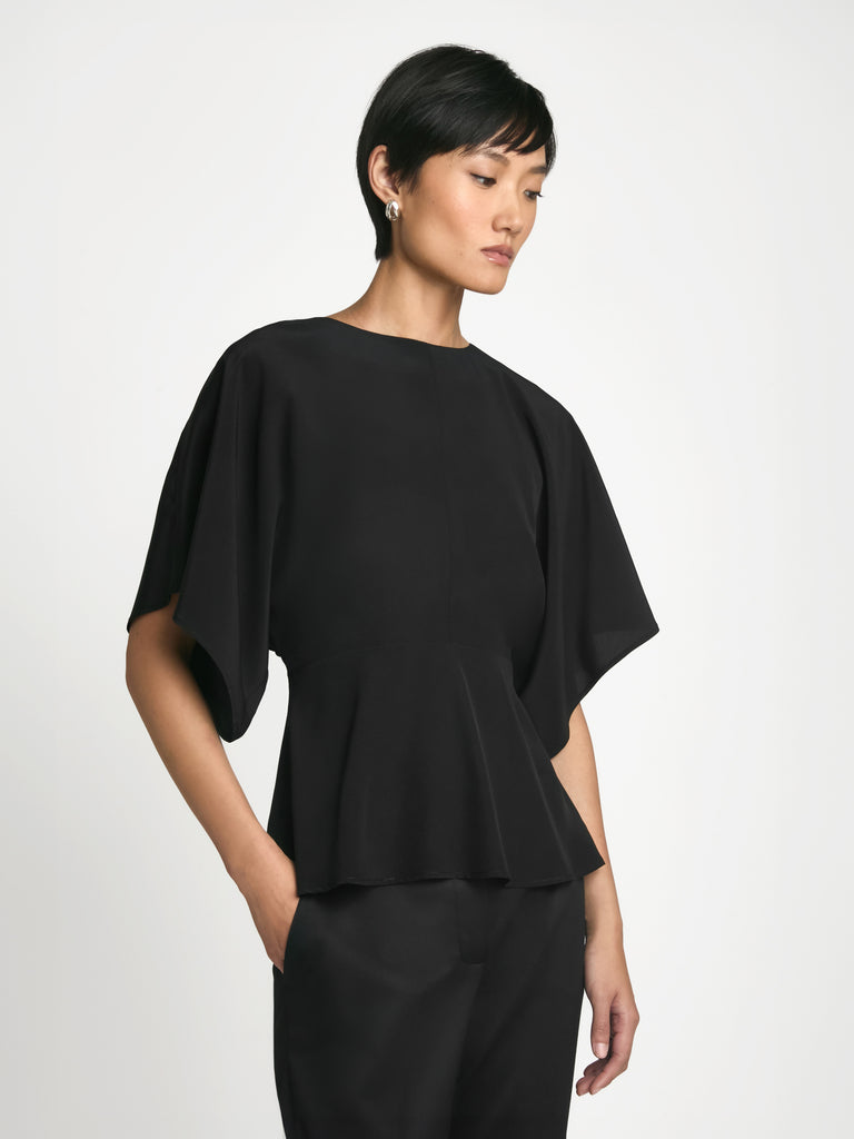 Flutter sleeve blouse in Silk Crepe de Chine, easy fit
