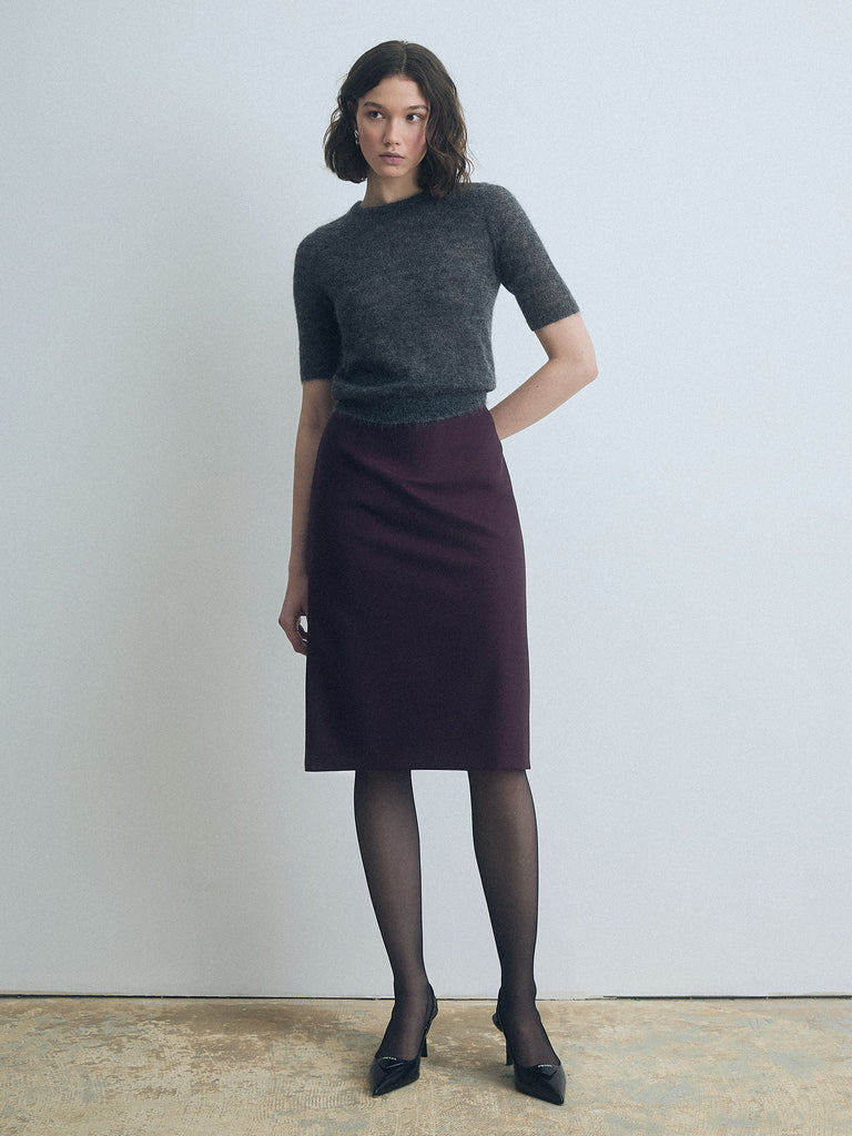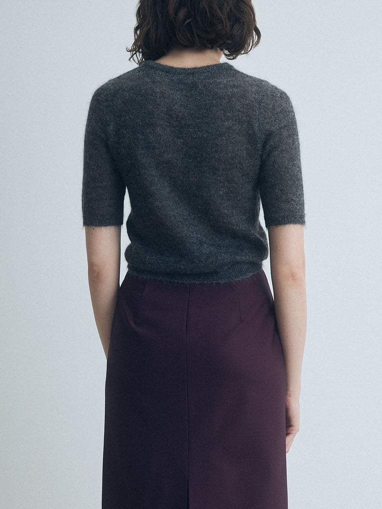 Lightweight mohair pullover with a crew neck and cropped fit. Unlined.