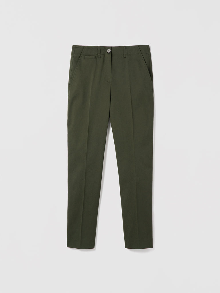 Ankle length slim pant in stretch bio-cotton twill, mid-rise