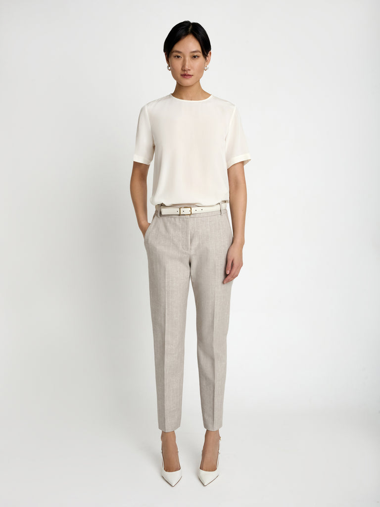 Ankle length slim pant in Striped Cotton Linen, mid-rise